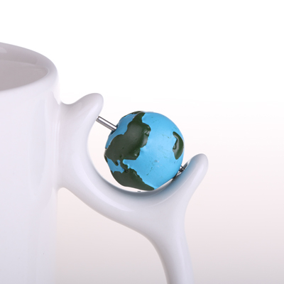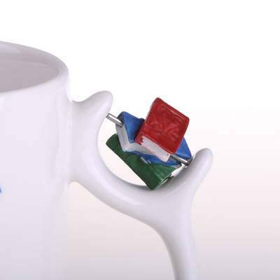 Ceramiczny kubek reklamowy z miejscem na dodatkowy gadżet reklamowy na uchwycie. Produkt jest końcówką serii, mogą na nim występować nakłucia, kropki oraz różnice w odcieniu szkliwa.